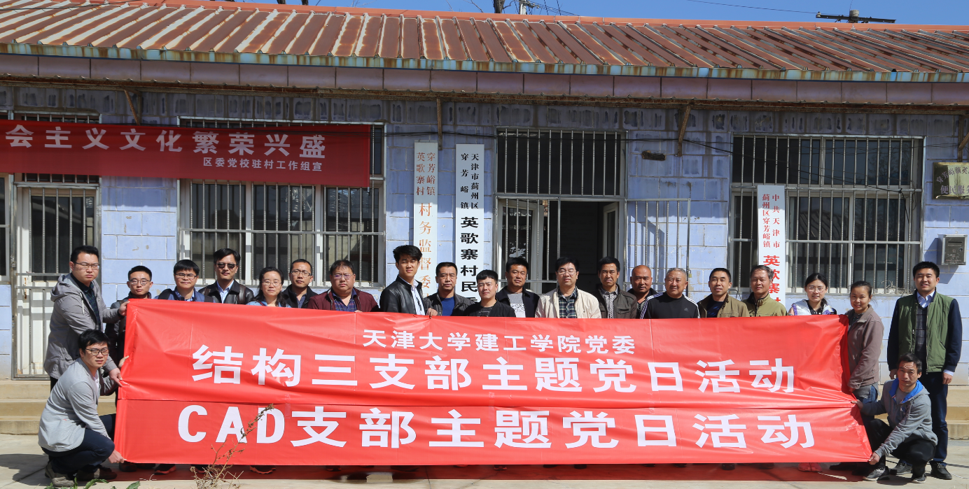 春和日丽,百花飘香。在党的十九大及全国两会闭幕之际,为活跃党支部生活、增强党支部凝聚力,调研新农村建设情况,同时向农村基层党支部宣讲党的十九大精神、分享本支部“两学一做”学习成果,天津大学建筑工程学院党委结构三支部及CAD支部于2018年4月14日赴天津市蓟州区穿芳峪镇英歌寨村开展了以“走进新农村、宣讲十九大”为主题的主题党日活动。