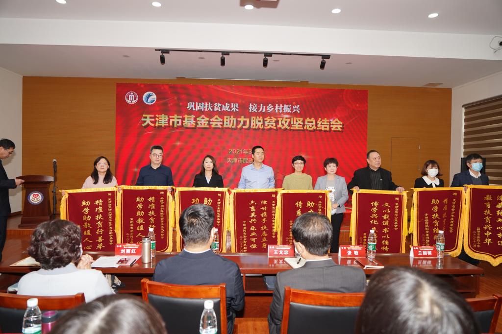 会议上,天津市民政局总结了各个基金会助力脱贫攻坚的经验,展示了基金会三年来脱贫攻坚历程视频片与扶贫项目成果展,为将来振兴乡村铺垫了很好的物质和精神基础。