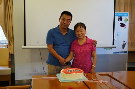最后,新入职教职工代表任宇晓和王枭华两位老师为白成军、戚蓝老师献上鲜花,表达了新入职教职工对两位前辈的感谢和敬爱,更展现了传承优良师德师风的决心和信心,接着与会老师一同分享蛋糕、分享甜蜜、分享成为一名教师的快乐,共同庆祝属于自己的节日。