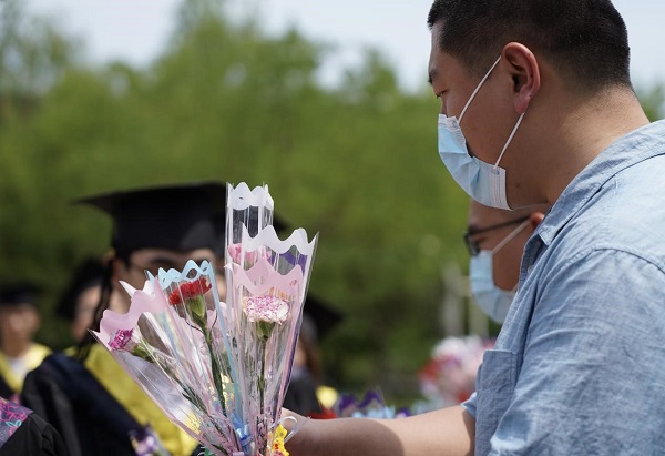 随后,全体毕业生高唱校歌。在高亢洪亮的歌声中,2020届毕业生们唱出了要实地把中华改造的决心与信念。