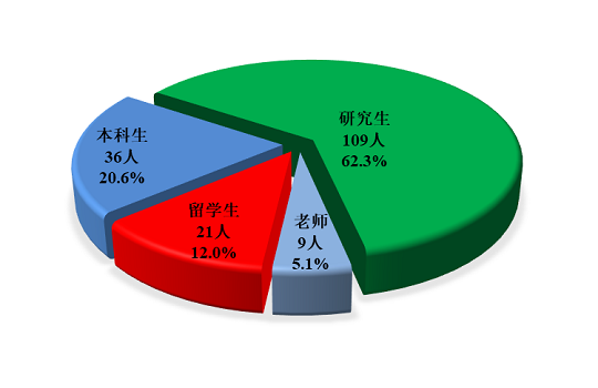 讲座由天津大学建工学院徐杰副教授主持,学院党委书记、院长韩庆华教授出席讲座并致欢迎词。讲座期间,Aboutaha教授通过“云端”在美国纽约就CFRP在桥梁工程中的应用,GFRP钢筋混凝土在海洋环境下的腐蚀问题,以及混凝土公路桥梁的体外预应力加固方法等展开了详细介绍。报告后,与会师生就相关问题开展了热烈的线上讨论,并进行了线上合影留念(图1)。据统计,本次“云讲座”共有175名师生参与,其中教师9人、研究生109人、留学生21人、本科生36人(图2),师生间对此次讲座反响热烈,讲座效果显著。