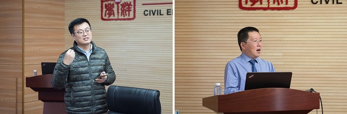 讲座期间,Dennis Lam教授就循环经济的定义、结合组合结构进行研究的原因、重复使用构件与新构件性能对比、重复使用构件对结构系统性能的影响等展开了详细介绍。会后与在场师生就相关应用问题开展了热烈交流与讨论。