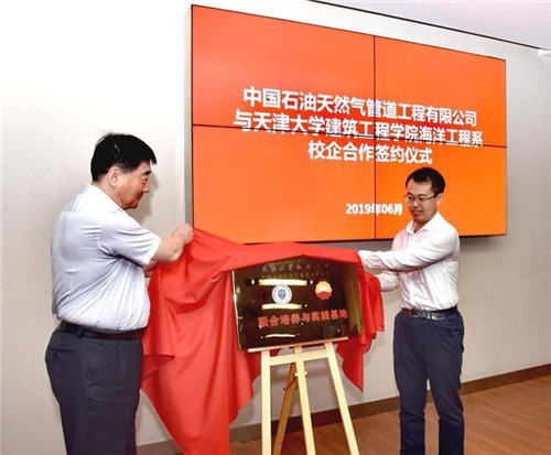 签约仪式上,天津大学建工学院高喜峰副院长与管道设计院黄丽副院长签定了为期4年的校企合作协议。管道设计院党委书记张英良与高喜峰副院长共同为“天津大学海洋工程系与中国石油天然气管道工程有限公司联合培养与实践基地”揭牌。天津大学海洋工程系主任黄焱和管道设计院海洋工程室主任马晓成就具体合作事项落实计划进行了深入交流。