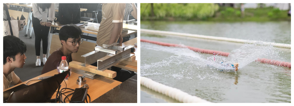 此外还需要在船上安装发动机和遥感接收设备,选手们通过遥控指挥龙舟的航行而进行直线竞速赛和障碍行驶赛。技术委员会结合队伍的技术说明书和技术设计答辩进行打分,综合计算得出总分,决出比赛的最终排名。