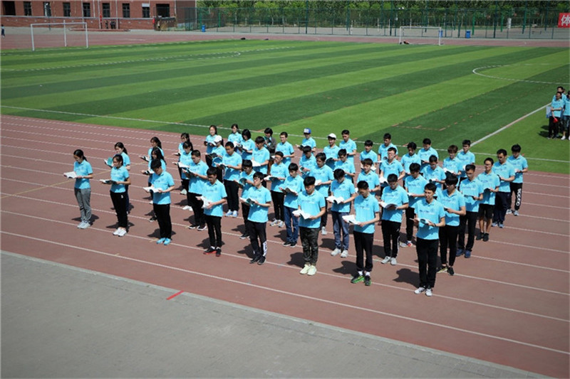当激昂的《义勇军进行曲》在操场上响起,国旗护卫队踏着整齐划一的步伐,喊着气势如虹的口号率先进入场地,完成了本次运动会的升旗仪式。随后,在昂扬的《运动员进行曲》中,学院本科生、研究生组成的多个方队身着统一的服装,迈着矫健的步伐,依次走过主席台接受检阅,响亮的口号、整齐划一的动作、积极向上的精神风貌展现出建工学子“移山填海,建功立业”的青春风采。