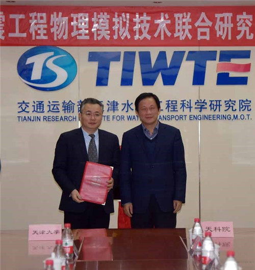 2018年12月25日,天津大学与交通运输部天津水运工程科学研究院(天科院)联合共建的岩土与地震工程物理模拟技术联合研究中心揭牌仪式在天科院临港实验基地举行。天津大学副校长张凤宝、天科院院长张华勤以及双方代表共同出席了仪式。揭牌仪式由天科院科技处处长赵洪波主持。