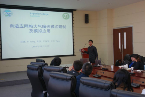接下来,郑捷老师开展了题目为《自适应网格大气输送模式研制及其模拟应用》的汇报,从自适应网格对污染平流输送的理想实验、自适应网格对SO2源强分布的模拟研究、非结构网格沙尘传输模式的构建与应用等几方面内容,分享了自己的相关见解与研究成果。