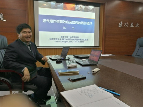 东南大学陈力教授做了题为《燃气爆炸荷载效应及结构的损伤破坏研究》的报告,结合大量的野外爆炸试验,系统介绍了燃气爆炸荷载的特点与爆炸荷载模型、燃气爆炸荷载作用下门窗玻璃、砌体填充墙等建筑构件的损伤破坏机理与抗爆加固技术。