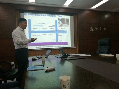中建科技集团有限公司郭海山总工程师做了题为《预制预应力快速装配框架体系研究与示范》的报告,结合工程实际运用,介绍了我国现有装配式结构的发展情况和未来前景,同时结合在研项目和科研成果,系统介绍了中建研发的新型预制预应力快速装配框架体系(中建PPEFF体系),包括其工艺试验、节点试验、子结构试验、整体模型试验以及工程示范等。