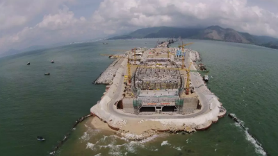 梁桁和团队大胆提出采用工厂法预制沉管,赶上紧迫工期。深浅坞平行布置,沉管坞内寄存,重力式混凝土和钢扶壁相结合的深坞坞门,三角形自稳式横拉钢结构浅坞坞门等多个获得国家发明及实用新型专利的重大创新设计方案。