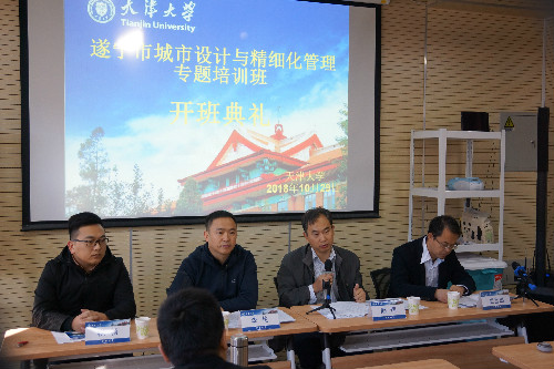 (通讯员 杨椿)2018年10月29日上午,由天津大学建工学院承办的“遂宁市城市设计与精细化管理专题培训班”开班典礼在第26教学楼B区511室举行。遂宁市城乡规划管理局副局长李伦、遂宁市市委组织部干部一科副科长税畅,天津大学远程与继续教育学院副院长赵伟,天津大学建工学院副院长高喜峰等领导及62名学员参加了此次开班典礼。典礼由建工学院副院长高喜峰主持。