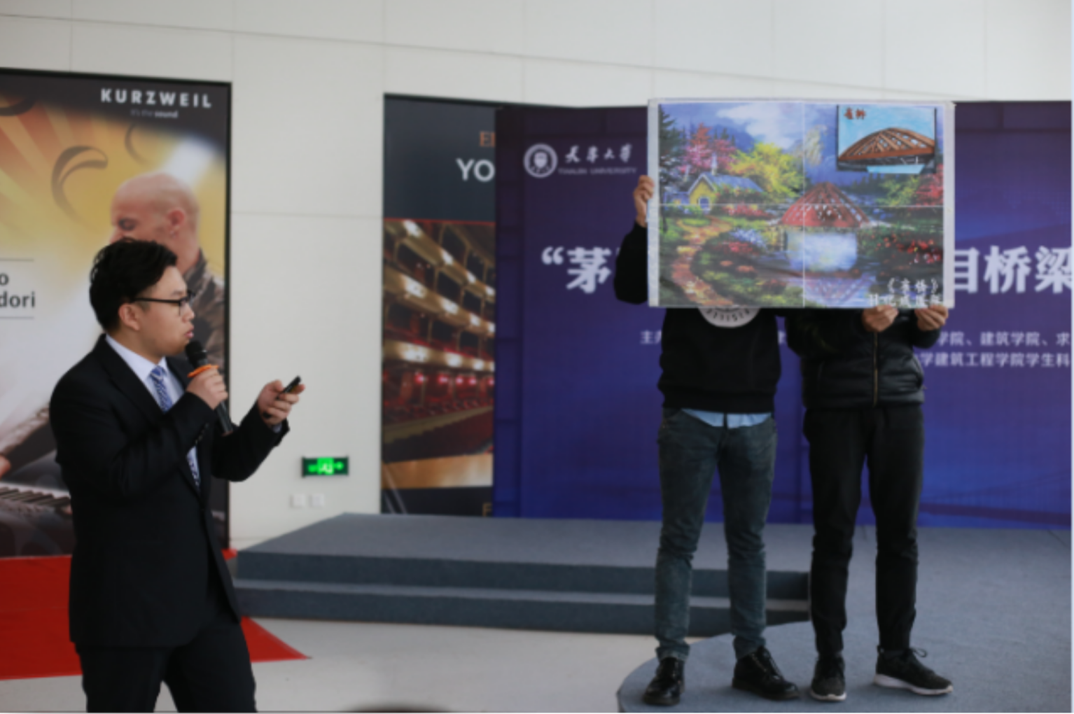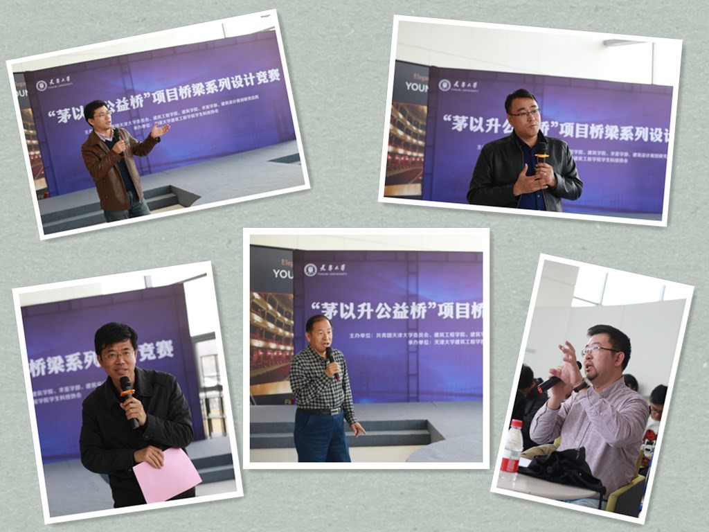 校团委副书记王开、建筑工程学院党委副书记李京霖分别为竞赛致辞。王开向在场的师生介绍了“茅以升公益桥”项目的背景:“茅以升公益桥项目源自茅以升基金会的小桥工程,是一项爱心助力扶贫活动,我们愿意承担这项公益活动的社会责任,并选择把这件有意义的事坚持下去。”李京霖鼓励学生们要把握“茅以升公益桥”设计竞赛这种难得的锻炼机会,向茅以升老校长学习,坚持“先习后学,边习边学”,做到努力治学、学以致用,积极投身公益、报效国家,“早年战争年代里,钱塘江大桥建设工地是北洋师生报效国家的战场,当今和平盛世中,相信茅以升公益桥同样能成为天大学子服务家国的田园。”