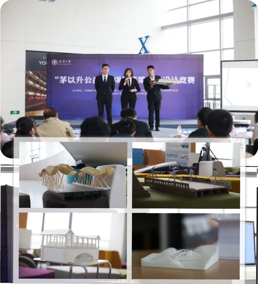 竞赛分为实体桥梁设计竞赛和桥梁概念秀。实体桥梁设计竞赛中参赛选手综合考虑桥梁结构设计、经济性、安全性等多项因素,设身处地考虑当地人民的需求,又不失天大品牌。《公益三桥探索者队》巧妙的将竹制的盖顶、米线形的栏杆、云南十八怪的廊桥和云南特有的风铃结合到桥梁的设计当中,处处体现着天大学子的设计灵感与聪明才智,凝聚着北洋师生的严谨治学和实事求是。