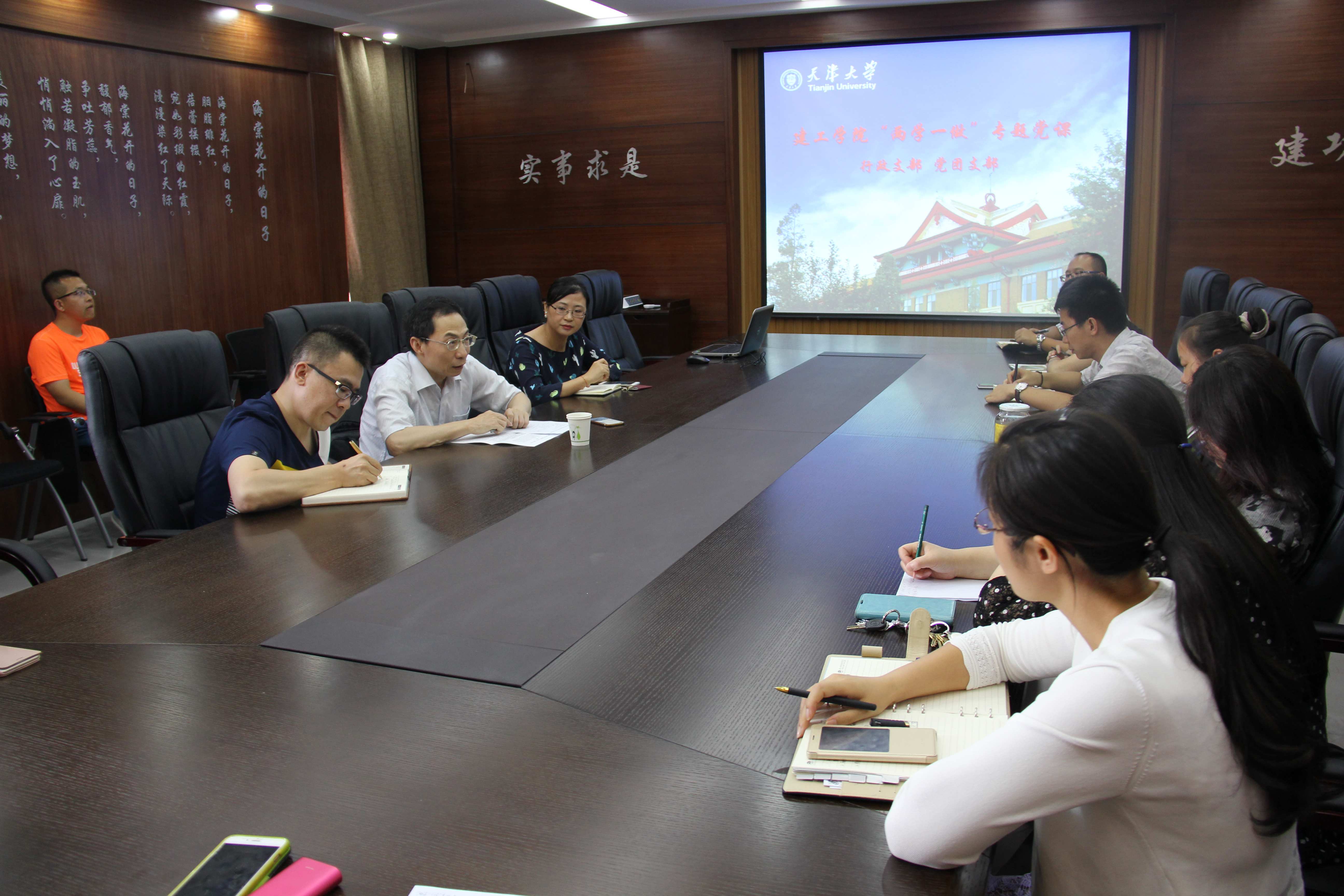 本站讯(通讯员 刘宝珑)按照学校“两学一做”学习教育方案的部署,6月30日,建工学院在北洋园校区学院会议室举办“两学一做”专题党课,院党委书记练继建主讲,学院行政支部、党团支部全体党员及院办、团委全体成员参加。