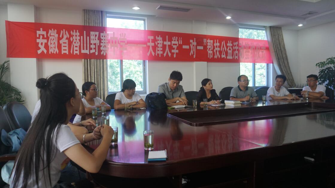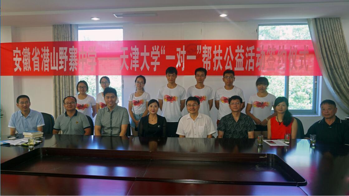 本站讯(通讯员 汪祥胜)7月23日,天津大学建筑工程学院与野寨中学“一对一帮扶”公益活动签约仪式在安徽省安庆市潜山野寨中学举行,建工学院党委副书记李京霖、野寨中学校长徐汉夫、副校长朱太平等领导老师参加,出席会议的还有建工学院新青年团队、建功立业实践队的学生代表。