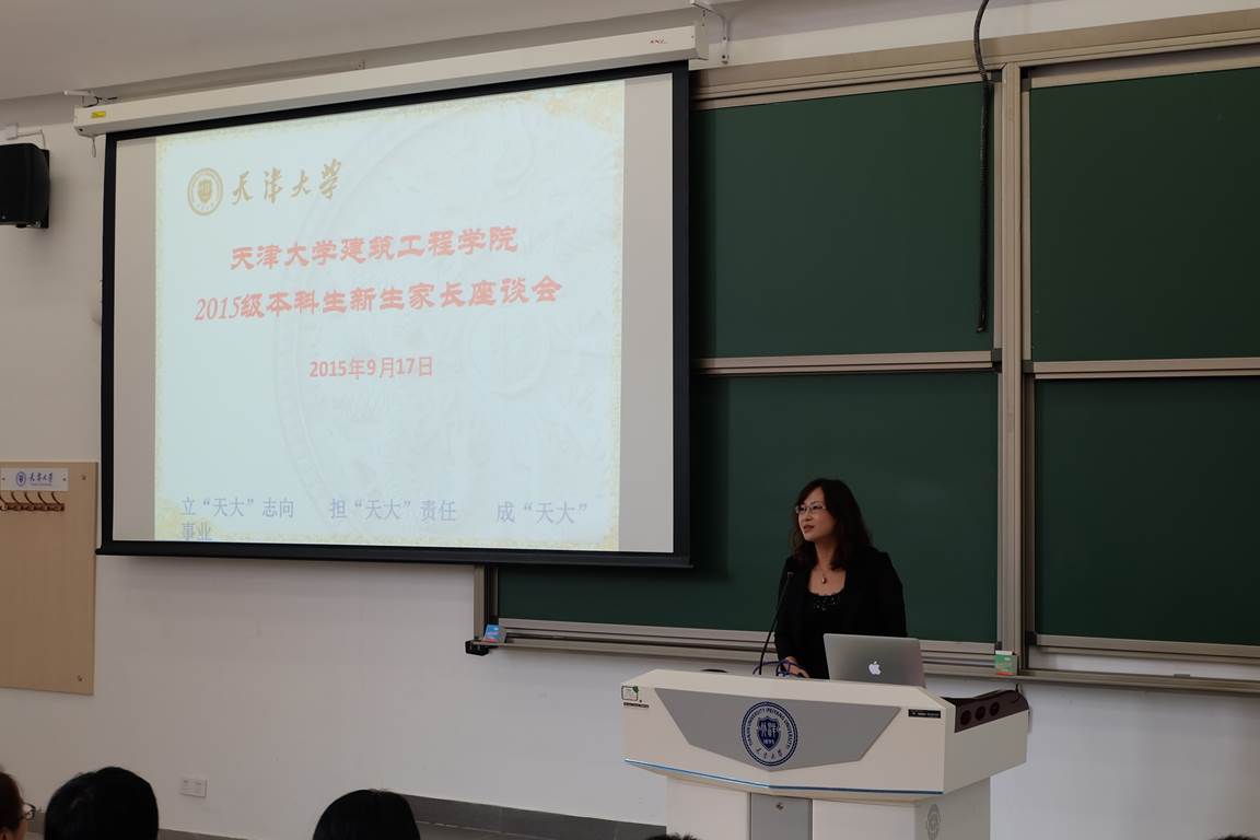 本站讯(通讯员 李云彩)9月17日下午,建筑工程学院2015级本科新生家长见面会在北洋园校区第46教学楼A110教室举行,学院党委副书记李京霖老师及近200名家长参与此次见面会。