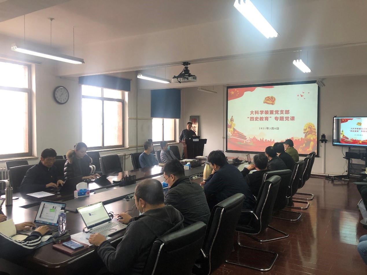 本站讯 (通讯员 杨政龙)为深入学习贯彻落实习近平总书记关于“四史”教育、党史学习教育的重要精神,持续深化爱国主义教育,知史爱党,知史爱国,3月8日大科学装置党支部邀请天津广播电视大学蔡爱东同志讲题为《中国自强之路简史导读》的专题党课。作为2021年度“四史”教育微党课的开堂第一讲,支部党员、入党积极分子和建设管理办公室群众代表参加了学习。