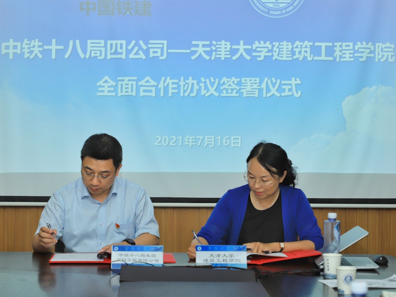 7月16日,中铁十八局集团第四工程有限公司党委书记谢红开一行9人来到天津大学建筑工程学院座谈交流,并签署了战略合作协议。天津大学建筑工程学院党委常务副书记王葳、土木工程系主任朱海涛以及土木工程系相关老师出席了签约仪式。仪式由土木工程系副主任程雪松主持。
