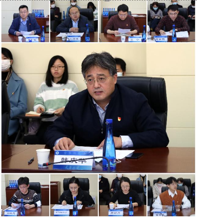 学院党委书记、院长韩庆华代表院党委中心组从认真学党史、深入悟思想、投身办实事、着力开新局四个方面分享党史学习教育学习心得;部分师生代表在全面系统学习党史、认真贯彻习近平总书记在中国共产党成立100周年庆祝大会上重要讲话以及十九届六中全会精神基础上,结合本职工作分享了心得体会,表示要坚持用党的经验指导实际工作,深刻领悟中国共产党人的初心和使命,在百年光辉历程中汲取前行力量。