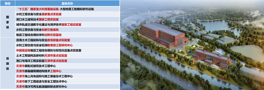 学院设有土木工程实验中心、水利工程实验中心、船舶与海洋工程实验中心3个教学实验基地;拥有大型地震工程模拟研究设施国家重大科技基础设施、水利工程仿真与安全国家重点实验室等4个国家级平台基地,;滨海土木工程结构与安全教育部重点实验室、水利工程仿真与安全监测教育部工程研究中心、天津市土木工程结构及新材料重点实验室、天津市港口与海洋工程重点实验室、中国地震局地震工程综合模拟与城乡抗震韧性重点实验室、天津市装配式建筑技术工程中心、天津市地下工程建造与安全技术工程中心、天津市房屋建筑钢结构工程技术中心、天津市海上风电结构与施工装备技术工程中心、天津市海洋可再生能源国际联合研究中心10个省部级平台基地;有2011协同创新中心联合单位组建分中心:“高新船舶与深海开发装备协同创新中心”天津大学分中心。平台基地实力突出,建有各种先进的试验设施,可为学生提供优质的实践和科研创新条件。