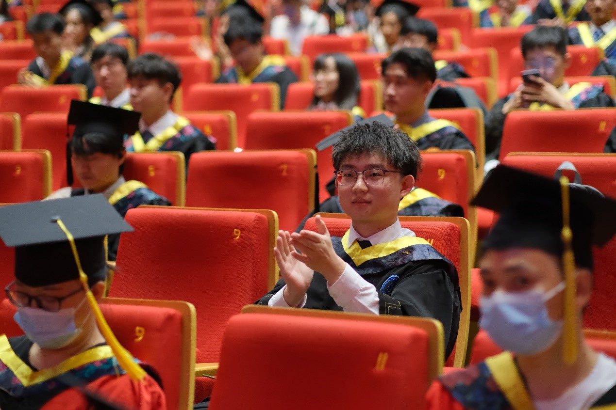 典礼开始前,毕业生献上精彩的暖场演出,一首首熟悉的旋律响起,赢得现场阵阵掌声与欢呼。激悦的情绪与音乐共振,与彼此共融。