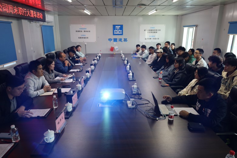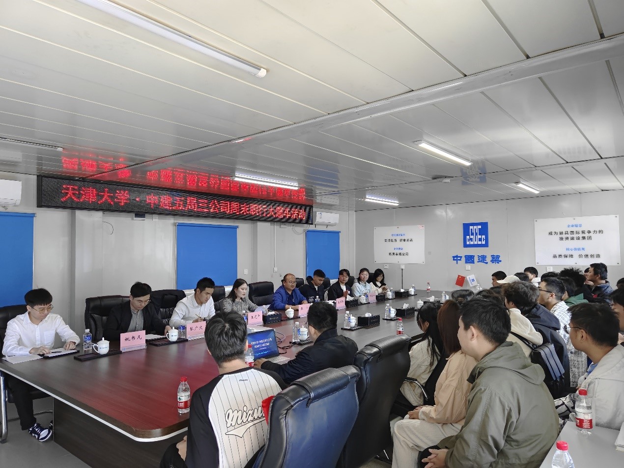在项目部会议室,学生们通过观看短片,了解了中建五局三公司当前的总体项目规划建设情况,并深入学习了项目建设的重要难点和设备使用技术。张宁主任向学生们详细介绍了中建五局三公司的工作理念和人才培养计划,帮助大家更好地了解行业就业情况。