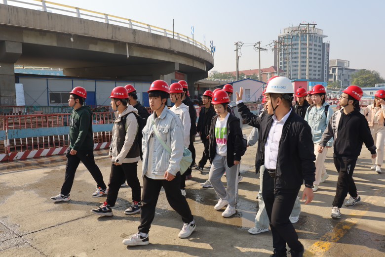 在王晓严总工的带领下,师生们参观了天津地铁七号线八里台站的地上建设部分,并详细了解了津河改道、明挖法施工等重点施工内容。通过实地观察和深入学习,学生们对项目的施工进度和建设情况有了更深入的了解,提高了专业认知水平,增强了专业认可程度。