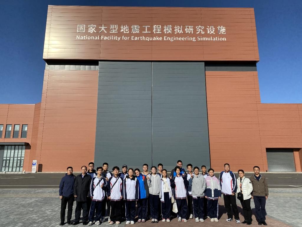 11月6日早上,来访师生集体乘车来到天津大学北洋园校区,首站便是国家大型地震工程模拟研究设施(简称“地震大装置“)。在这里,同学们感受“国之重器“的震撼,品味世界前沿科技的魅力。在”地震大装置“仿真中心张含英厅,同学们聆听了师燕超教授的科普讲座《神奇的土木工程》。讲座中师教授深入浅出,从自己的求学经历讲起,将土木工程学科用通俗易懂、幽默风趣的语言展现在了同学们的面前,并鼓励大家认真学好科学文化知识,为我国土木工程事业作出贡献。