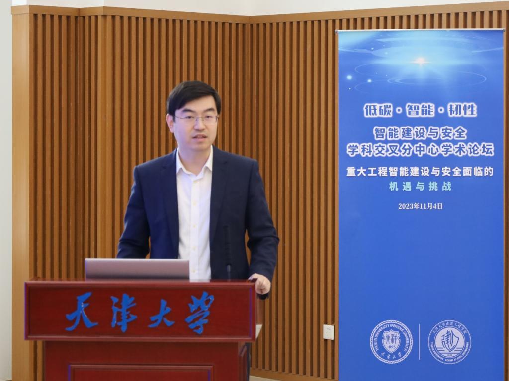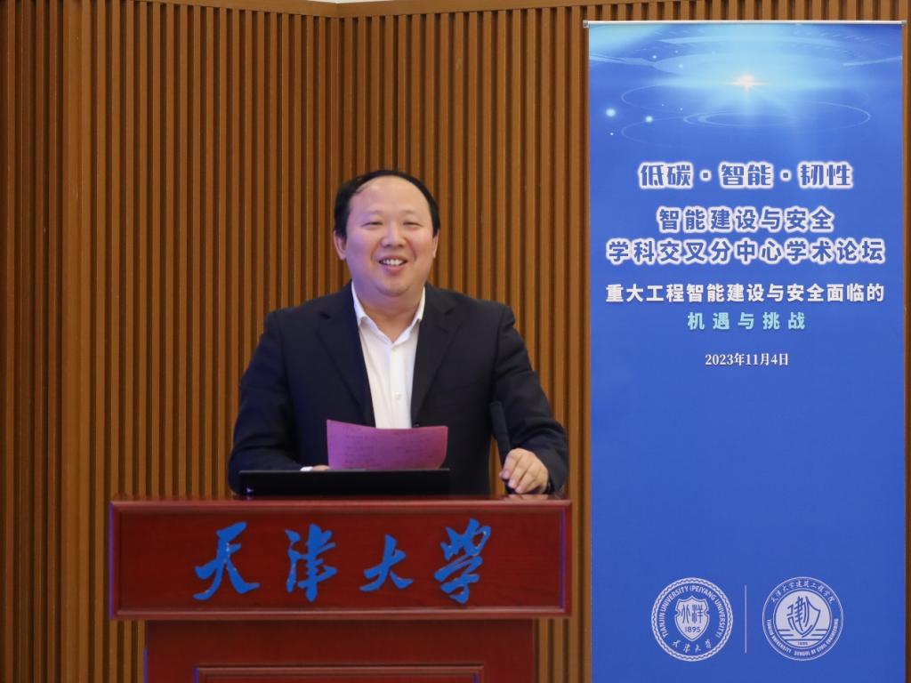 为推进智能建设与安全学科交叉分中心建设,促进学科交叉融合发展,11月4日天津大学建筑工程学院举办智能建设与安全学科交叉分中心学术论坛,论坛主题为“低碳·智能·韧性,重大工程智能建设与安全面临的机遇与挑战”。天津大学建筑工程学院党委书记马德刚、天津大学原副校长余建星、研究生院非学历继续教育管理办公室主任蔡建爽、天津大学建筑工程学院常务副院长师燕超出席论坛开幕式。来自建筑工程学院、智能与计算学部、机械工程学院、数学学院、精密仪器与光电子工程学院100余名教师及学生代表参会。土木工程、水利工程、船舶与海洋工程、仪器科学与技术、智能制造装备、系统优化与可靠性等学科领域,共计15位专家做主题报告,并围绕“重大工程智能建设与安全面临的机遇与挑战”的论坛主题开展了深入交流研讨。论坛由师燕超主持。