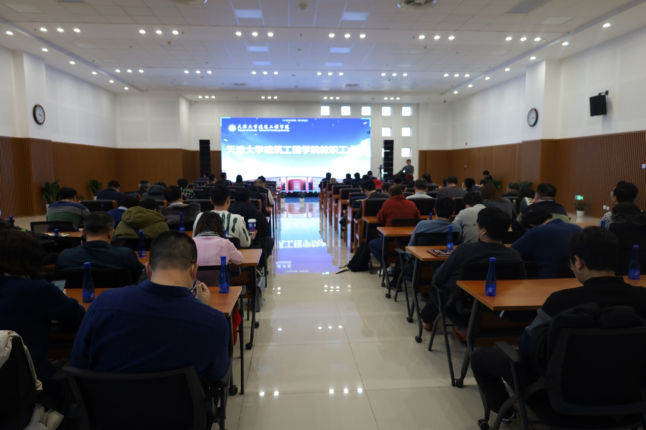 (通讯员:建筑工程学院办公室)1月5日下午,天津大学建筑工程学院教职工大会在天津大学北洋园校区召开。天津大学党委副书记、建筑工程学院院长韩庆华出席会议并讲话。学院领导班子成员以及全体教职工参加会议,会议由副院长王希然主持。会议通过线上线下相结合方式召开。