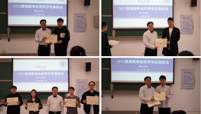 余教授向2022级海船专业66名获奖同学颁发证书,赵庆昂、陈雨婷等12人获特等奖,欧岳杨、陈鸿宇等26人获一等奖,张斯佳、刘家豪、俞浩扬等28人获二等奖,齐园13斋239、齐园15斋229等四个宿舍获优秀宿舍。余教授对获奖学生表示祝贺,并对成绩不佳的同学以及宿舍提出反思、整改要求,希望同学们一定要比学习态度、比学习投入、比学习方法、比学习效率、比学习成绩,严格要求自己,努力学好每一门课,在全年级形成优秀的学风。