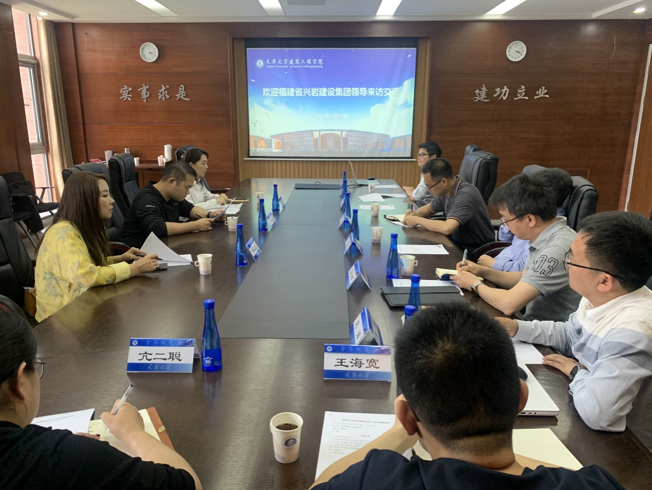 杨敦旭对福建省兴岩建设集团一行表示欢迎。他表示,建筑工程学院在土木工程、水利工程等领域科研实力雄厚,积累了丰富的研究成果,希望通过此次调研交流,双方能够在科技赋能产业发展、人才引进等方面加强合作,发挥各自优势,共同推动产学研深度融合。叶永斌介绍了集团基本情况和技术需求,希望与天津大学加强沟通与联系,在人才培养、实习就业、科技成果转化等方面开展广泛合作。
