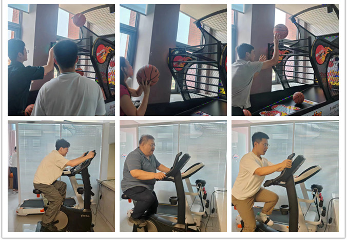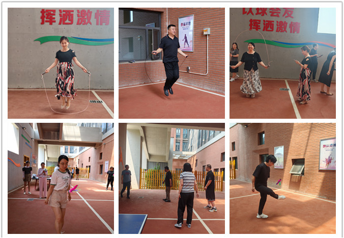 比赛过程中,教师们以饱满的热情投入比赛,充分展现了教职工的活力与风采。比赛现场,欢呼声、赞叹声此起彼伏,气氛热烈。“绳彩飞扬”项目中,教师们的动作轻盈而流畅,每一次跳跃都恰到好处,与绳子的节奏完美契合。随着老师们手腕的快速转动,跳绳在空中飞快地穿梭,划过一道道优美的弧线。“实力遇毽”环节,老师们身手敏捷,紧盯着在空中飞舞的毽子,时而转身,时而轻轻跃起,将毽子稳稳地踢起。“百发百中”环节,参赛教师微微弯曲膝盖,找准时机,一次次抬手投球,前一个球带着呼啸的风声刚刚应声入网,后一个球沿着同样优美的曲线已经追随而至,篮球机上的分数也随之不断跳动。“一骑逐梦”过程中,教师们全神贯注,表情坚定,双手紧握着车把,双腿有节奏地踩着踏板,不断地加速前行,每一个细节都蕴藏着对运动与挑战的热爱。