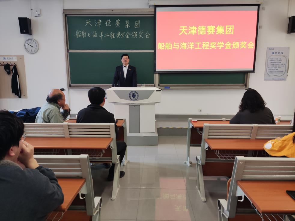 (通讯员:段庆昊)2024年4月13日,2023级高新舰船与海洋装备智能设计及管理专业“天津德赛集团船舶与海洋工程奖学金”颁奖会在43教A214顺利召开,国家教学名师、国家973计划首席科学家、国务院学科评议组成员、天津大学原副校长、船舶与海洋工程学科带头人余建星讲席A类教授,天津德赛集团董事长苏士琦(77级天大海船杰出校友)、总经理杨阳(天大校友),建工学院党委副书记张宏垚、团委书记张学同、辅导员葛佳佳,专业教师段庆昊以及全体2023级海船专业本科生参加会议。