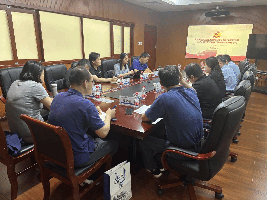 为深入贯彻中央八项规定精神学习教育(以下简称“学习教育”),5月29日下午,天津大学建工学院海工党支部与海油发展采油公司研究院党支部开展 “党建引领强作风,产教融合育英才”的联学共建。共建包括学习教育、产研交流和滑环中试基地参观三个环节,先后在滨海新区海洋石油工程大厦和中海油能源发展采油服务公司进行。学习教育会议由海工支部书记李英主持,产研交流和滑环中试基地参观由研究院总工程师、支部委员李牧主持。