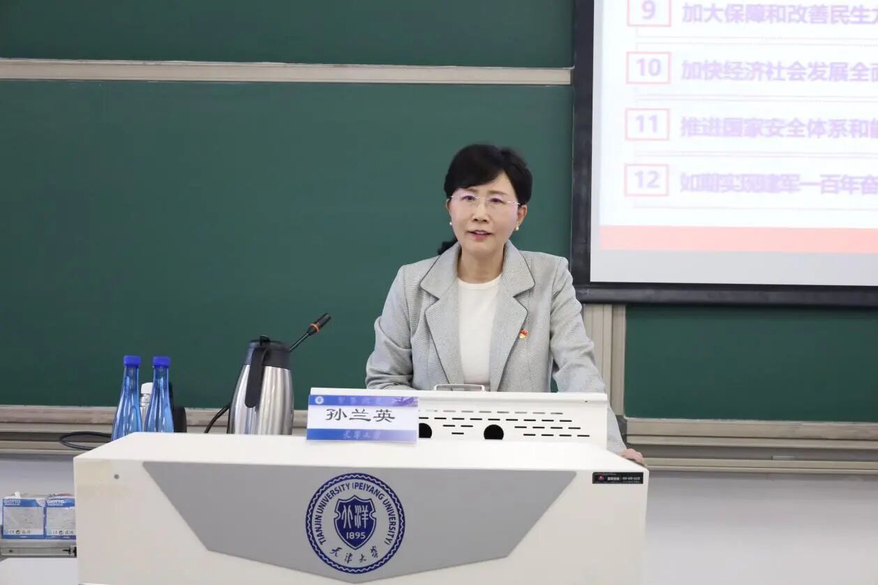 为深入学习贯彻党的二十届四中全会精神,切实把全院师生的思想和行动统一到党中央决策部署上来,11月12日下午,建工学院邀请天津大学关工委副主任、讲席教授孙兰英讲授《守正创新 接续奋斗 谱写中国式现代化新篇章——学习党的二十届四中全会精神》专题辅导报告。学院党委理论学习中心组成员、党委委员、师生党员代表、入党积极分子等参加,报告会由学院党委副书记张宏垚主持。