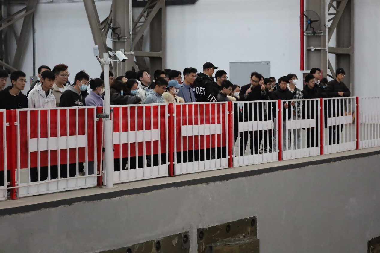在地震大装置科学工艺部副部长刘铭劼的带领下,师生实地学习了解设施的主要功能、技术特点和应用成果。这是我国地震工程领域首个国家重大科技基础设施,建成后将大幅提升全社会减轻自然灾害风险的能力,刘铭劼老师如是讲到。参观过程中,同学们纷纷就参观过程中的疑惑进行提问,现场气氛热烈。