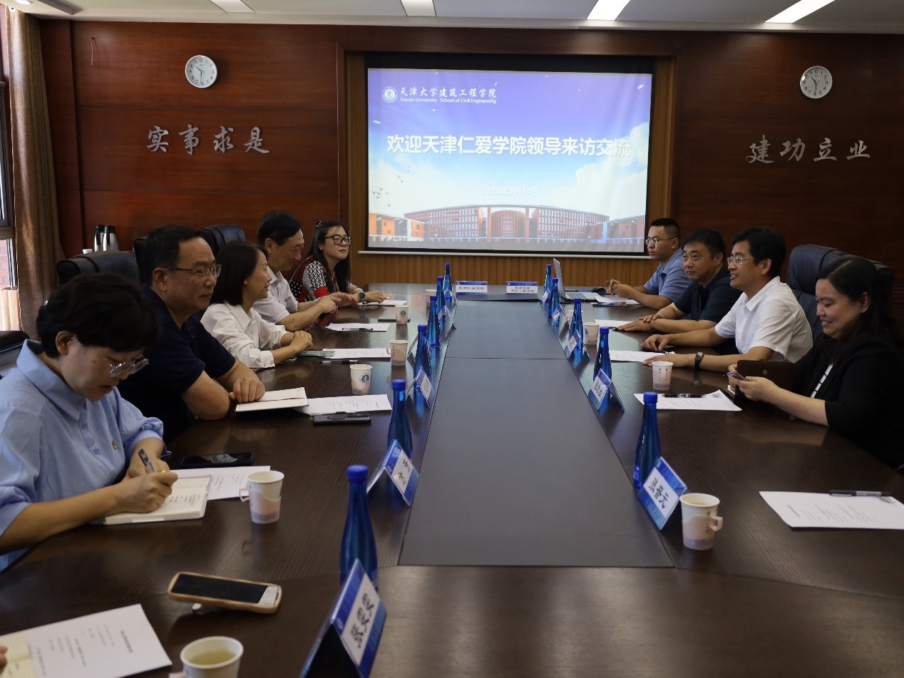 (通讯员 田永刚)9月14日上午,天津大学党建包联工作组组长、天津仁爱学院党委副书记李霞,天津仁爱学院建筑工程学院院长杨建江、党委书记田永伟一行6人来我院座谈交流。建筑工程学院党委书记马德刚、副院长王希然、党委副书记张宏垚以及土木工程系主任张晋元参加活动。