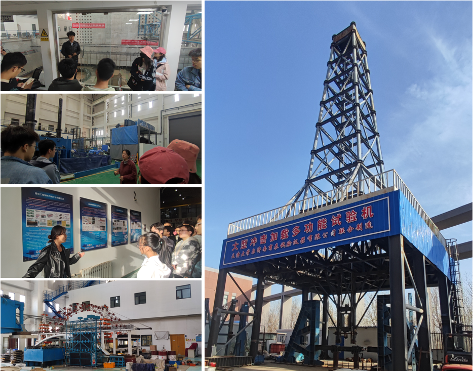 在土木工程实验室,同学们分5批进行参观,在老师的带领下详细了解了结构实验室、岩土工程实验室、地下工程实验室和抗震抗爆实验室。张惠申、刘景锦、姜晓峰、赵博老师分别讲解了土木工程实验中心的基本概况,介绍了大型冲击加载多功能试验机等实验装置。