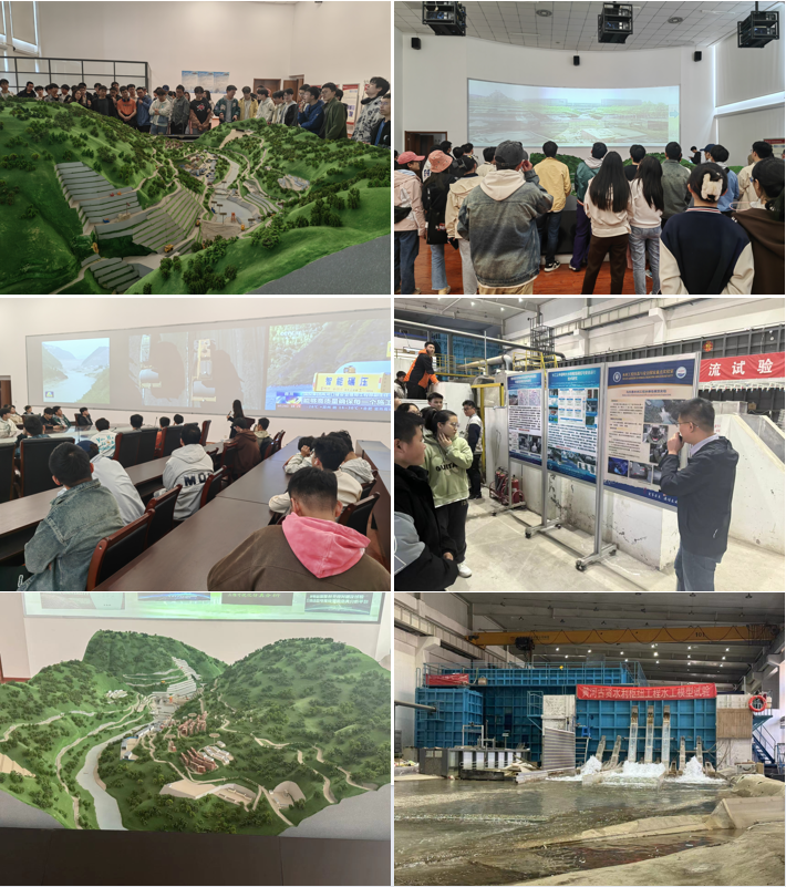 在水利水电工程专业,同学们详细了解了水利工程智能建设与运维全国重点实验室。余佳、郭耀华老师分别讲解了以智能碾压、智能仿真等为代表的水利工程科技前沿成果以及新工科毕设创新实践项目“水利工程智能建设关键技术”的实施历程,并带领同学们参观了低气压高速水流试验,黄河古贤水利枢纽工程水工模型试验,考虑腐蚀和冲刷效应的土-桩-桥梁结构振动台试验,黄登地质模型等,观看了大坝施工技术实例影片。