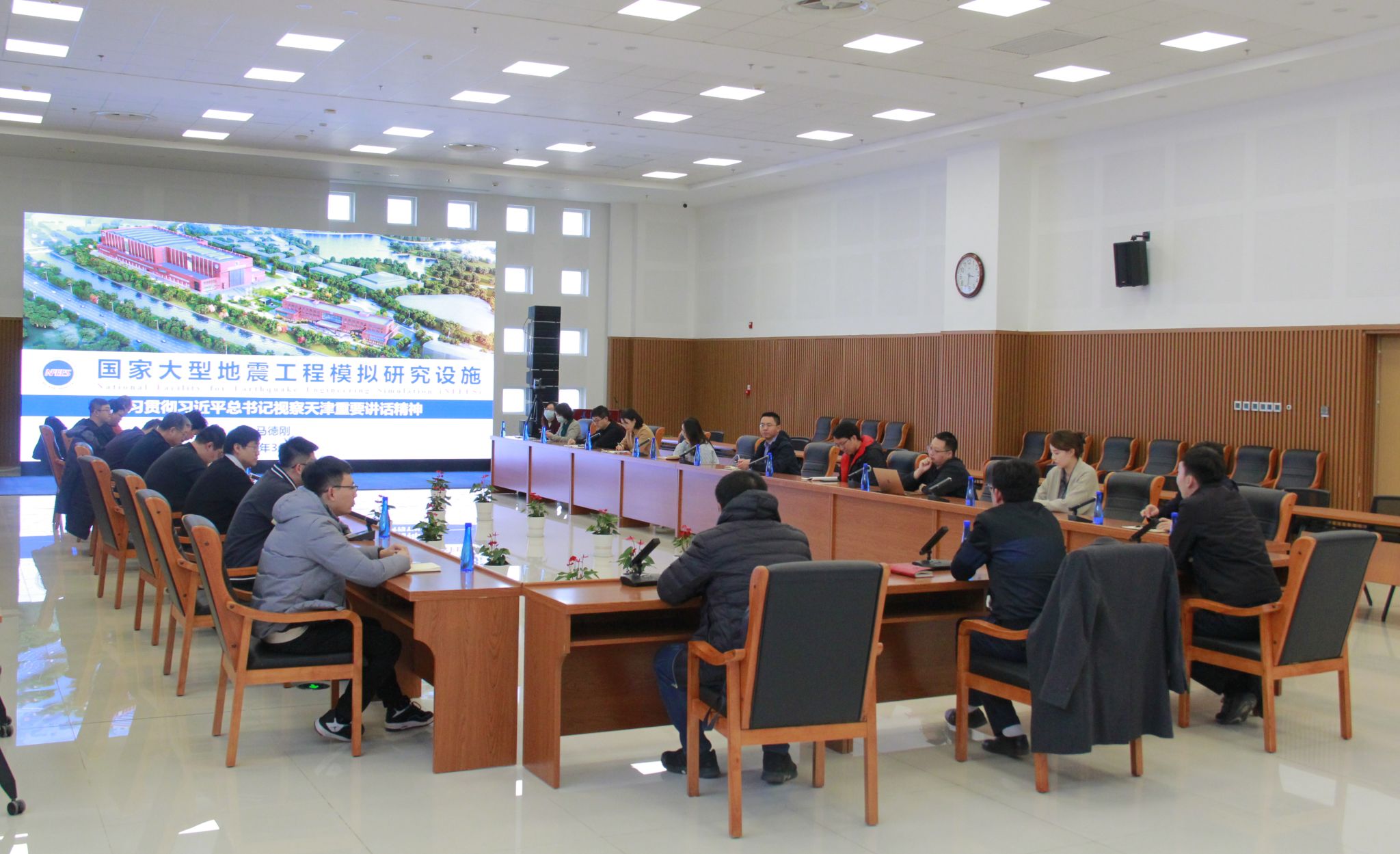 马德刚总结回顾了地震大装置的建设历程,明确指出今年即将面临的国家验收任务之艰巨、责任之巨大、使命之光荣,鼓舞大家要以身作则、身先士卒,在关键时刻要能站得出来、豁得出去,真抓实干、埋头苦干,发挥好党支部的战斗堡垒作用与党员的示范引领作用,用实际行动给总书记强调的“加强韧性安全城市建设”交答卷。大科学装置党支部书记朱然代表支部向学院党委表态,朱然表示大科学装置党支部将不忘“支部建在连上”的初心,聚力推动“一融双高”,鼓足干劲,以优异的成绩完成设施建设与验收工作,在中国式现代化天津篇章中作出天大人的贡献。