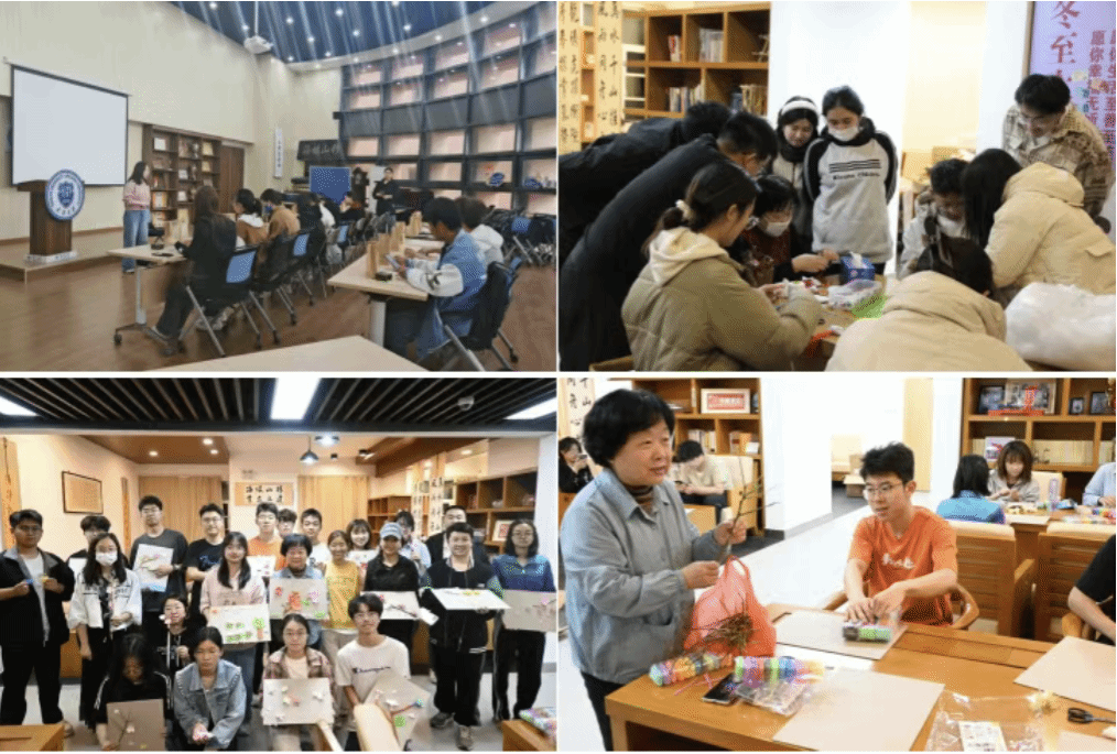 邀请非遗传承人、校女红课戚蓝老师走进海棠书屋,指导师生制作编织、螺钿、粘土等传统手工艺品,让非遗技艺在劳动中焕发新生。
