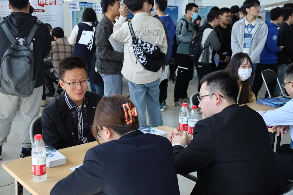 双选会现场气氛热烈,展位前人头攒动,同学们纷纷就工作内容、发展空间、薪资待遇等问题向招聘单位进行咨询。本次双选会也得到了各用人单位的高度重视,各单位积极向同学们介绍自己的企业文化、组织构架、人力资源政策等多方面内容以招贤纳士。