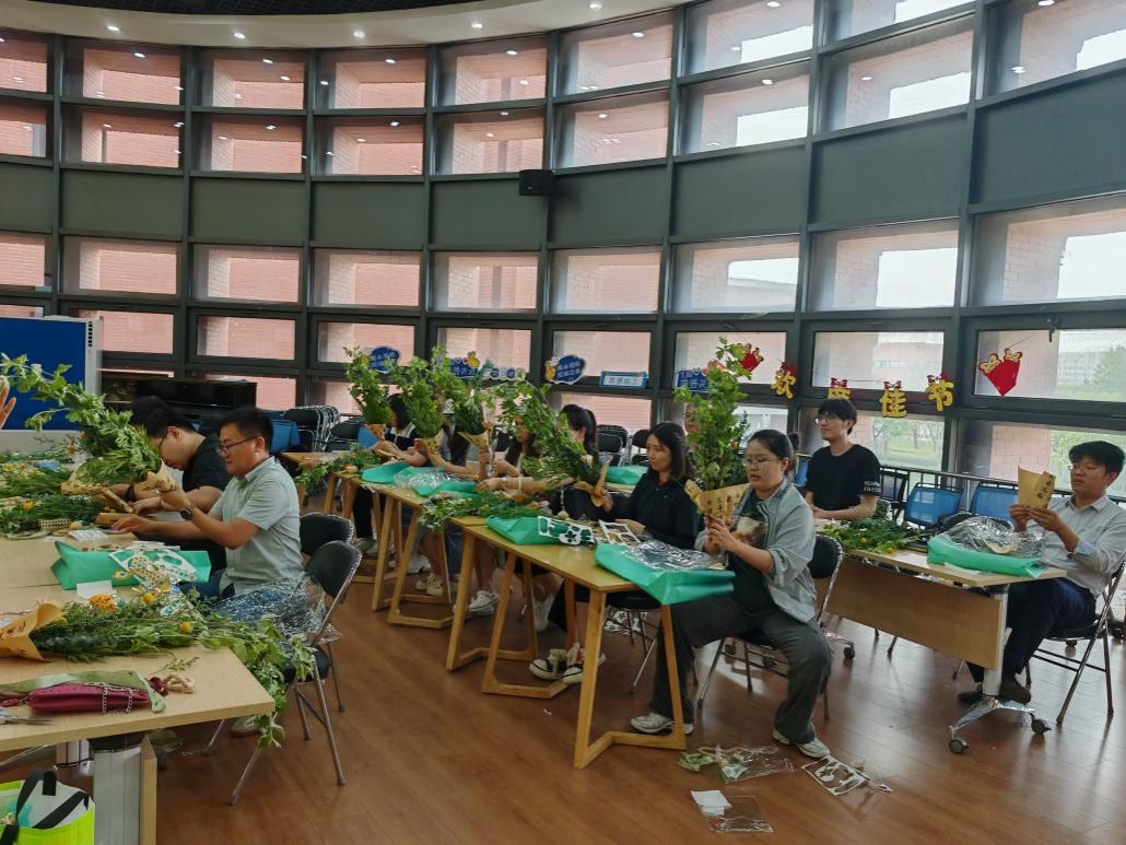 临近端午,院工会特别策划了艾草花束制作系列活动。教职工们在专业老师指导下,兴致盎然地动手搭配艾草、尤加利叶等花材,制作龙舟、香囊等饰品,精心捆扎装饰,制作出一束束寓意健康吉祥、造型别致的艾草花束。大家在动手实践中,深切体会了端午节俗的文化魅力。