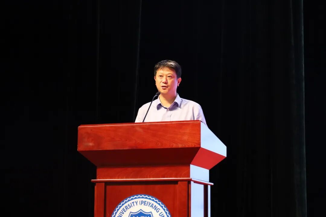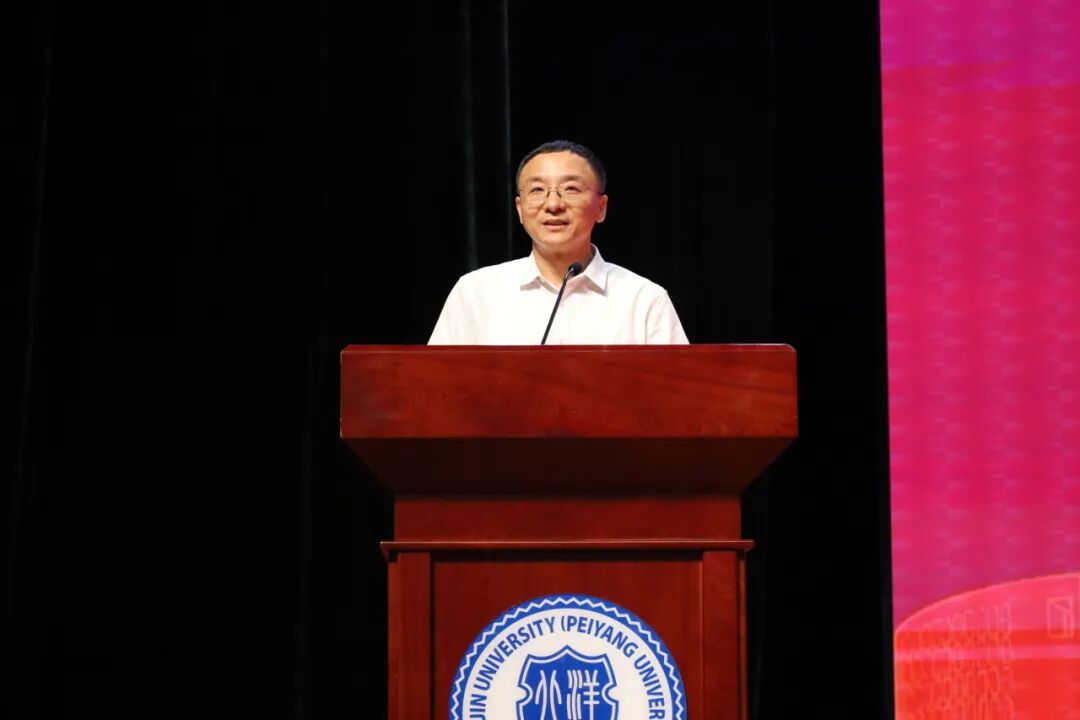 典礼伊始,全场起立,奏唱中华人民共和国国歌。激昂的旋律回荡在会堂,点燃了新生们的爱国情怀与使命担当。随后,在校生代表迟学君分享了他在北洋园的成长故事,从学业探索到实践创新,为新生勾勒出大学奋斗的清晰蓝图;新生代表黎恩泽则以充满朝气的发言,表达了对大学生活的憧憬与期待,承诺将以"实事求是"的校训为指引,脚踏实地、勇毅前行。