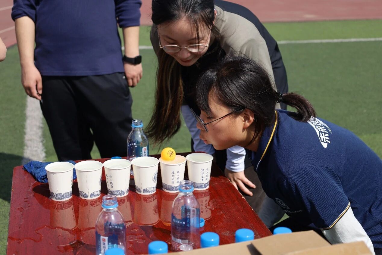 趣味运动在操场上同步展开,摸石过河、袋鼠接力跳、三人四足等项目吸引了众多同学参与,大家在轻松有趣的氛围中放下压力、释放活力,在默契配合中展现出团结协作的精神,共同创造了充满欢笑与动感的难忘回忆。