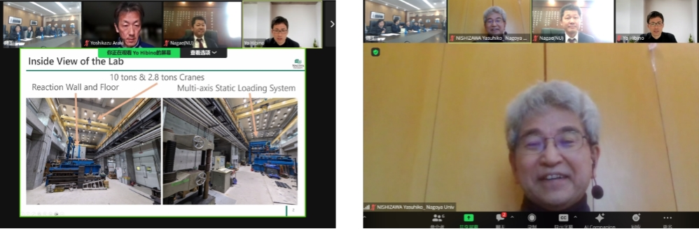 2024年3月12日下午,我院与名古屋大学环境学研究科举行线上线下交流座谈会,线下地点为北洋园校区第43楼建筑工程学院C501会议室。日方线下参会的专家为环境学研究科Nagae Takuya(長江 拓也)副教授,线上参会的专家包括:环境学研究科前部长Nishizawa Yasuhiko(西澤 泰彦)教授,环境学研究科Komatsu Hisashi(小松 尚)教授、Araki Yoshikazu(荒木 慶一)教授及Hibino Yo(日比野 陽)副教授。建筑工程学院常务副院长师燕超教授、院长助理何理教授、土木工程系副主任程雪松教授、岩土工程研究所副所长赵高峰教授、水利水电工程系副主任马超教授、港口工程系袁德奎研究员、土木工程系石运东副教授及学院外事秘书王凤阳线下出席会议。会议由何理教授主持。