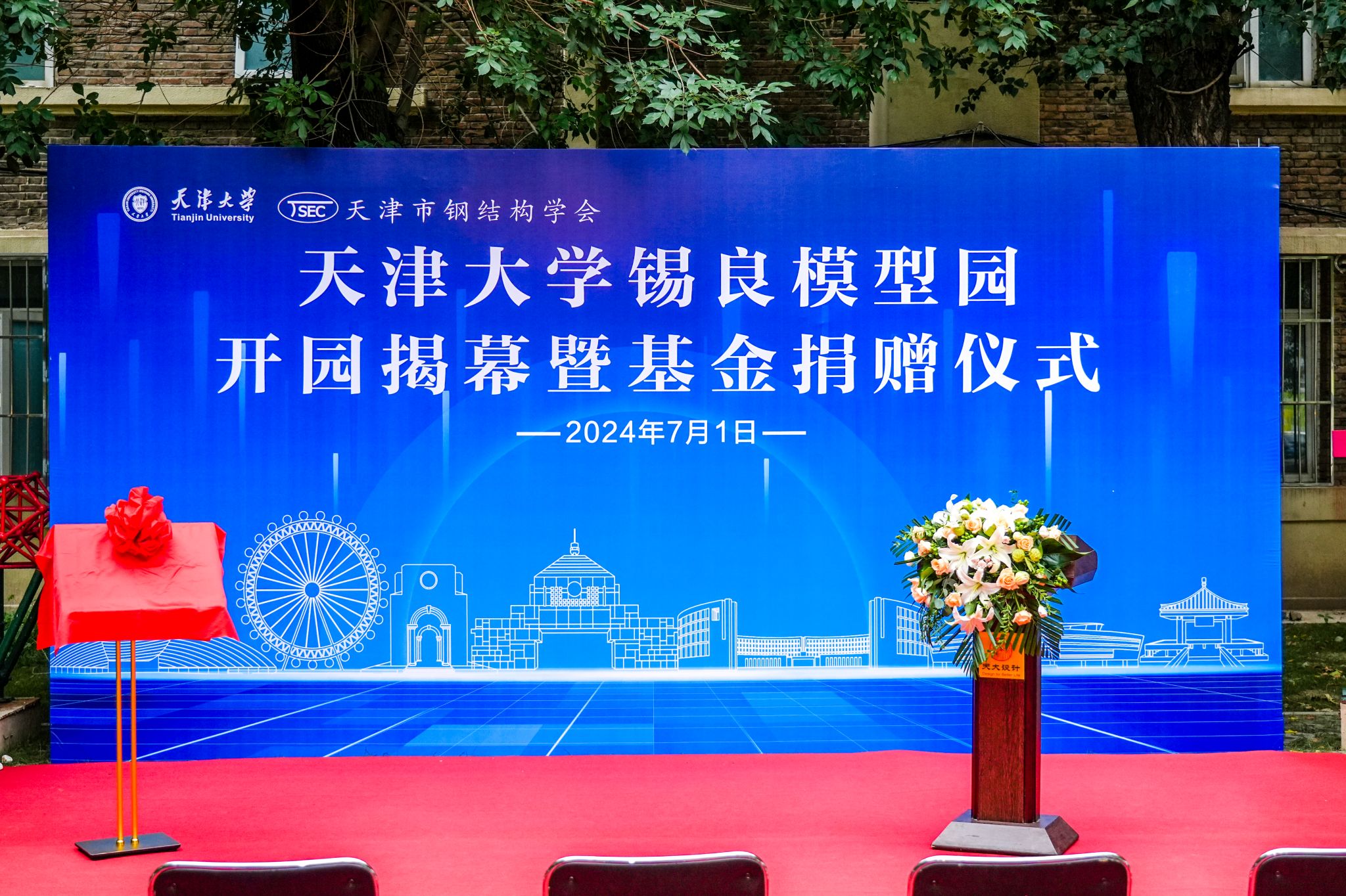 (通讯员:梁国霞)2024年7月1日下午4:30,以我国空间结构鼻祖、钢结构泰斗、天津大学教授刘锡良名字命名的“天津大学锡良模型园”(以下简称“锡良园”)开园揭幕暨基金捐赠仪式在天津大学卫津路校区隆重举行。出席本次活动的主要领导有:中国高等教育学会副会长、原天津大学党委书记李家俊,天津大学常务副校长胡文平,天津大学党委副书记韩庆华,天津市钢结构学会理事长、天津城建大学副校长陈志华,天津大学校友与基金事务处处长潘峰,天津大学国际教育学院党委书记金旋,山东省钢结构行业协会会长、山东建筑大学教授周学军,山东省钢结构行业协会秘书长、山东建筑大学教授柳锋,天津大学出版社党委书记、天津大学建筑学院教授宋昆,天津市钢结构学会副理事长、天津大学建筑工程学院副教授尹越,天津市钢结构学会秘书长、天津大学建筑设计规划研究总院副院长贾莉等。部分校友及学生代表参加活动,活动由韩庆华主持。