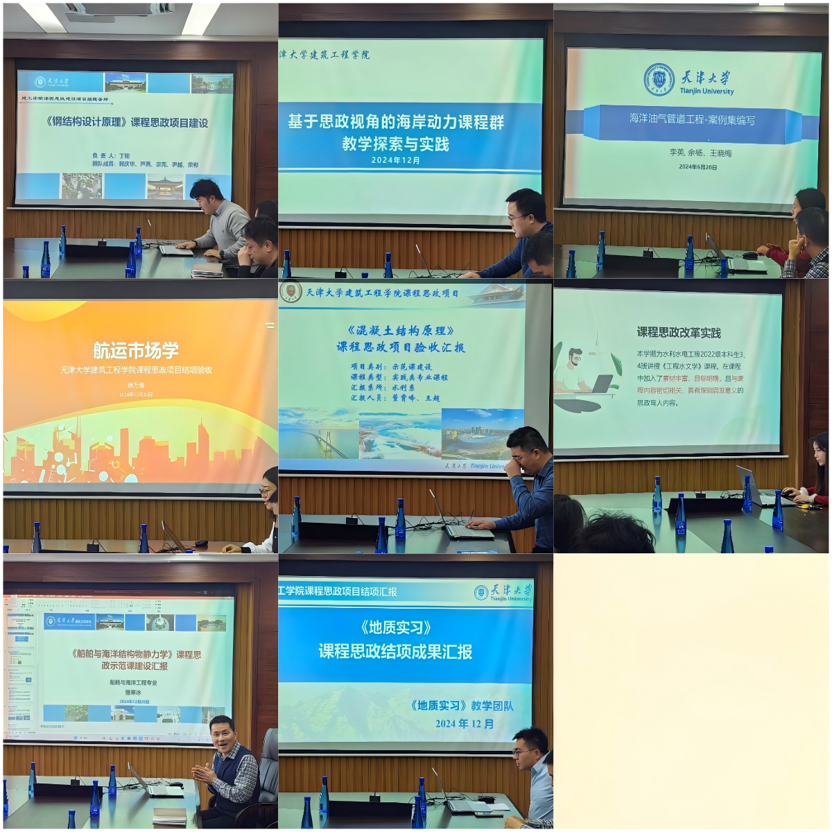 课程思政项目分为:素材库建设、案例集收集、示范课程三种不同类型。共有《工程水文学》等18门课程思政建设项目参与验收汇报。各项目负责人以课程思政建设总体设计情况、教学实践情况、课程建设成效、课程特色创新、授课计划为重点进行汇报。张晨副院长通过素材库、案例集收集情况,示范课程授课方案、授课视频展示情况,并结合课程本身的教学特点,与项目负责人就项目建设工作和课程运行等方面进行了互动提问并提出了意见。