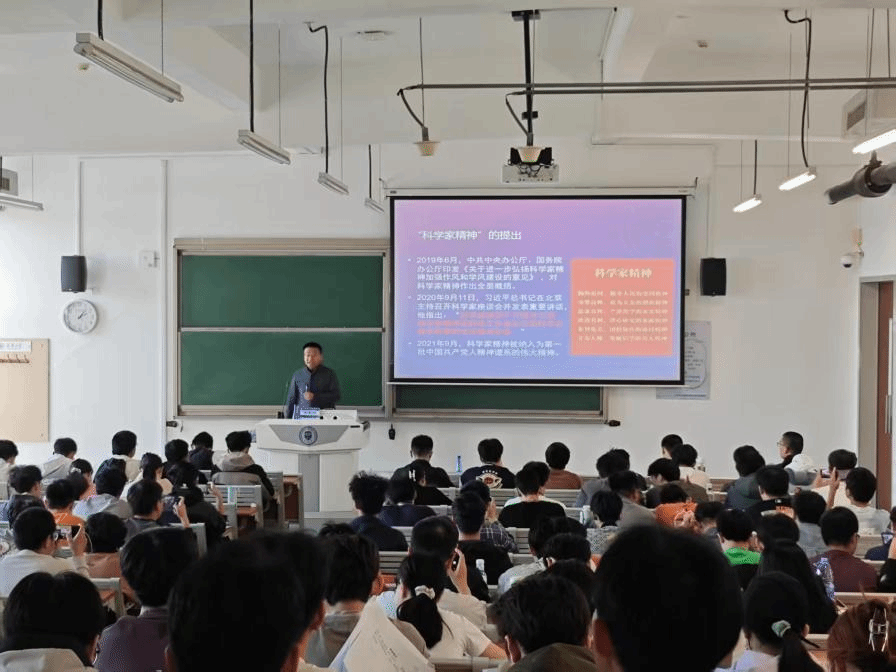 报告环节,黄晓伟老师从“科学家精神”出发,以詹天佑、冯景兰、钱学森、黄大年四代科学家的真实事迹为切入点,阐释了他们所承载的家国情怀。他借助一系列鲜活的实例,全面展示了科学家群体在科研探索、技术革新以及国家建设等领域所取得的卓越成就,并着重强调了他们在遭遇艰难险阻时,始终不改初心、敢于担当的崇高精神风貌,并勉励同学们要秉持家国情怀、永攀科技高峰。通过此次报告,与会师生不仅深刻领略了科学家们的辉煌成就,更被他们真挚的家国情怀所触动,纷纷表示将以此次活动为新的起点,进一步提高自己的思想政治素养,勤奋学习专业知识,未来投身国家建设,贡献自己的智慧和力量。